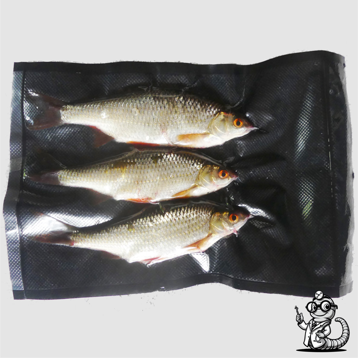 Die Köderfische werden im Vakuumbeutel immer zu 3 Stück verpackt.