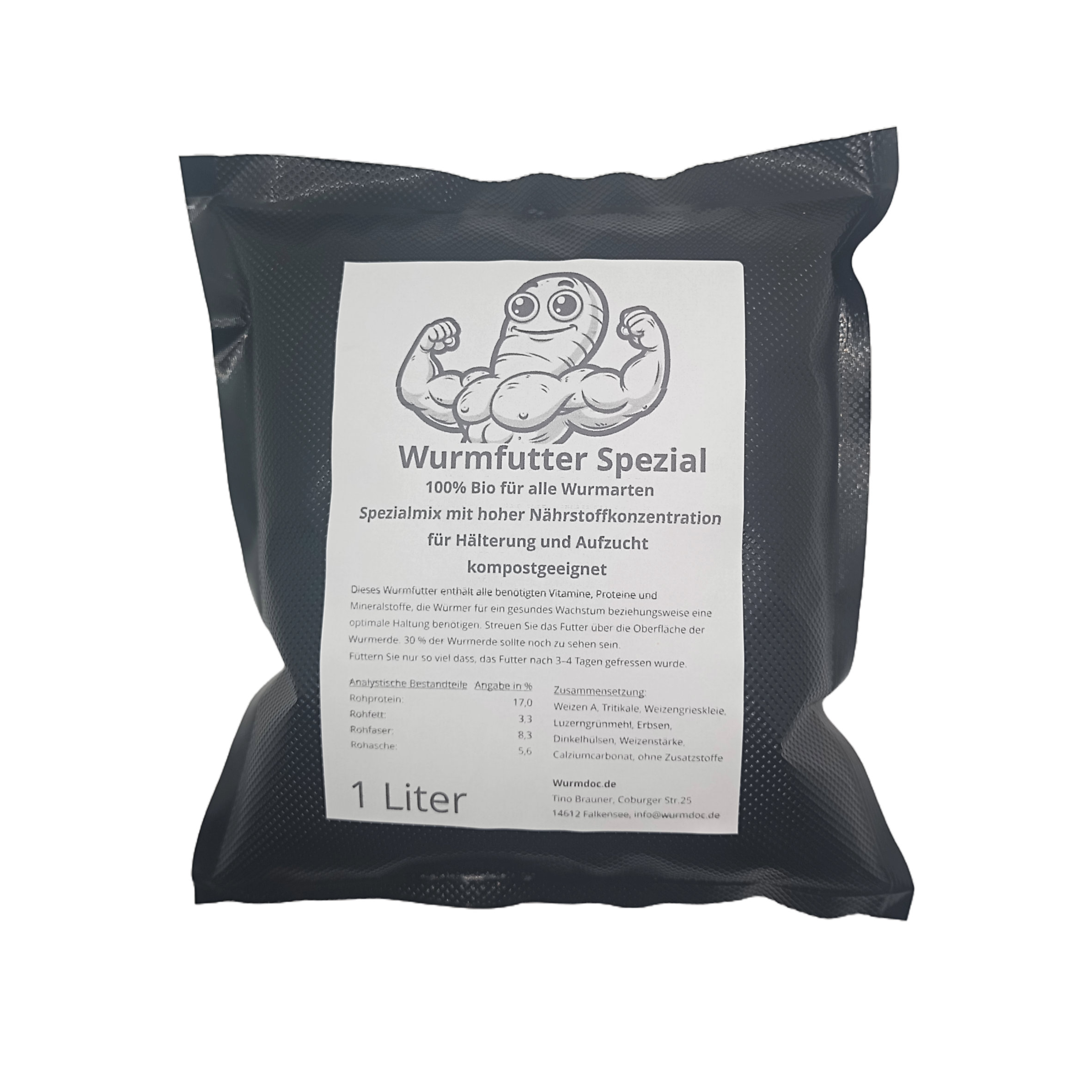 Unser Wurmfutter enthält alle benötigten Vitamine, Proteine und Mineralstoffe, die die Würmer für ein gesundes Wachstum und eine optimale Haltung benötigen.